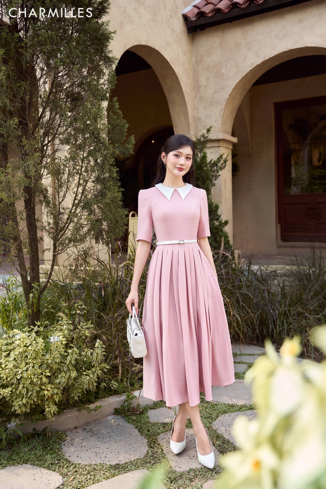Đầm TC xoè , phối cổ tay lỡ